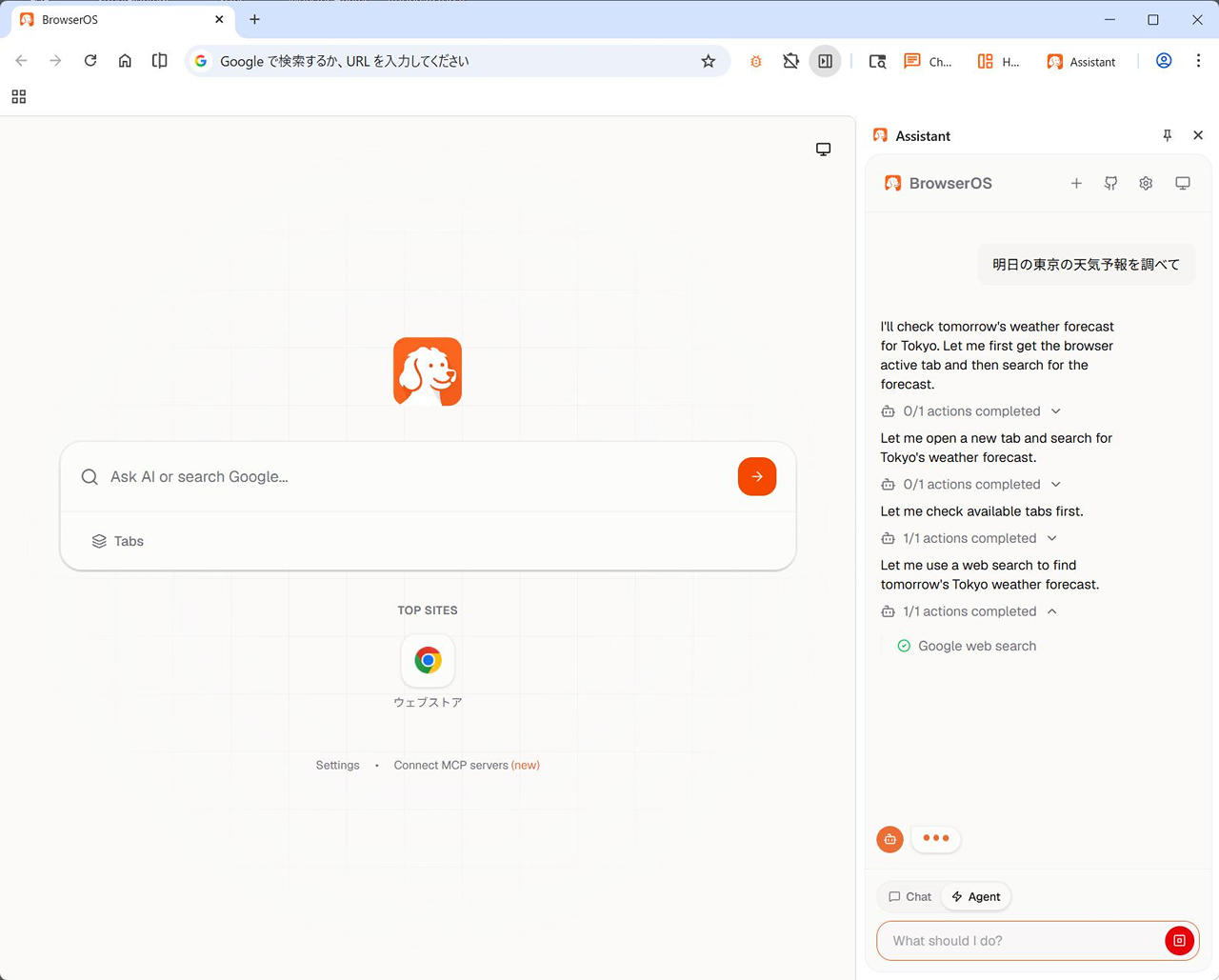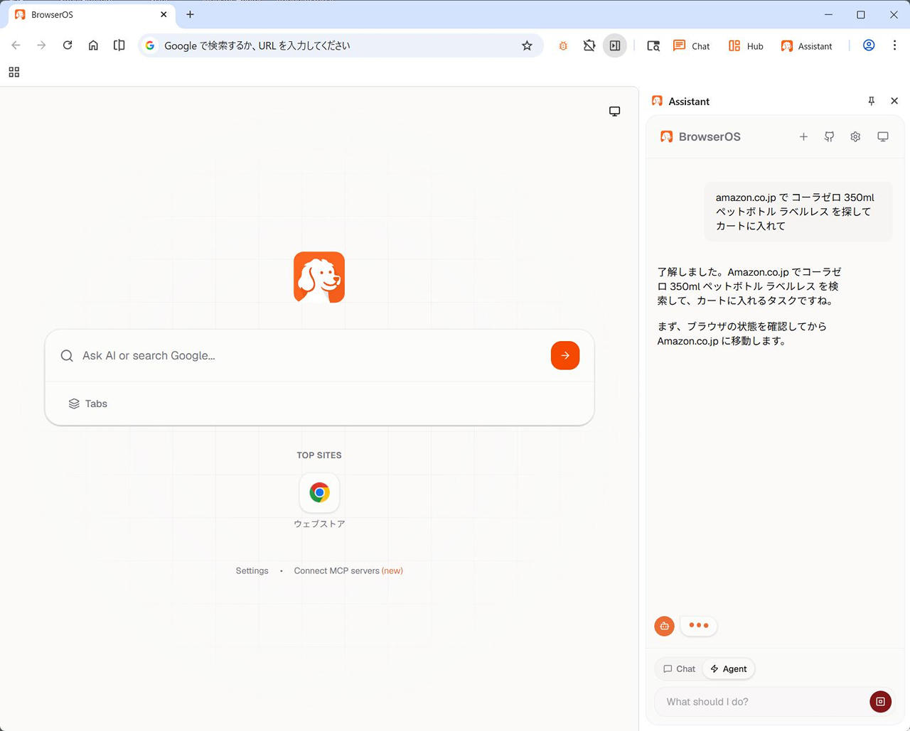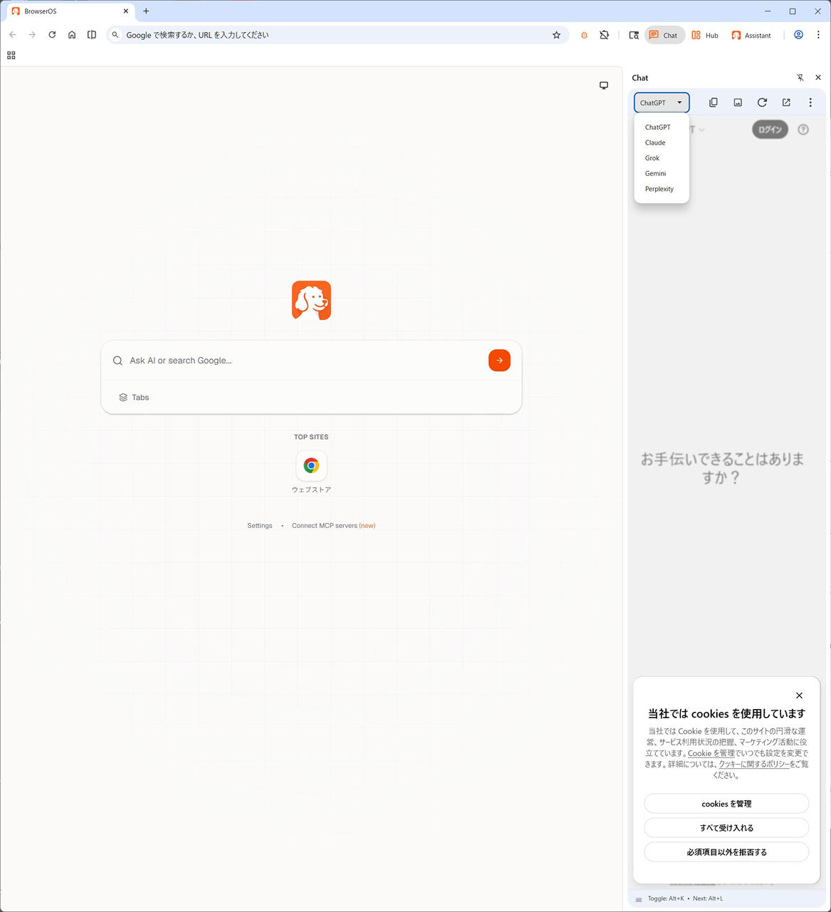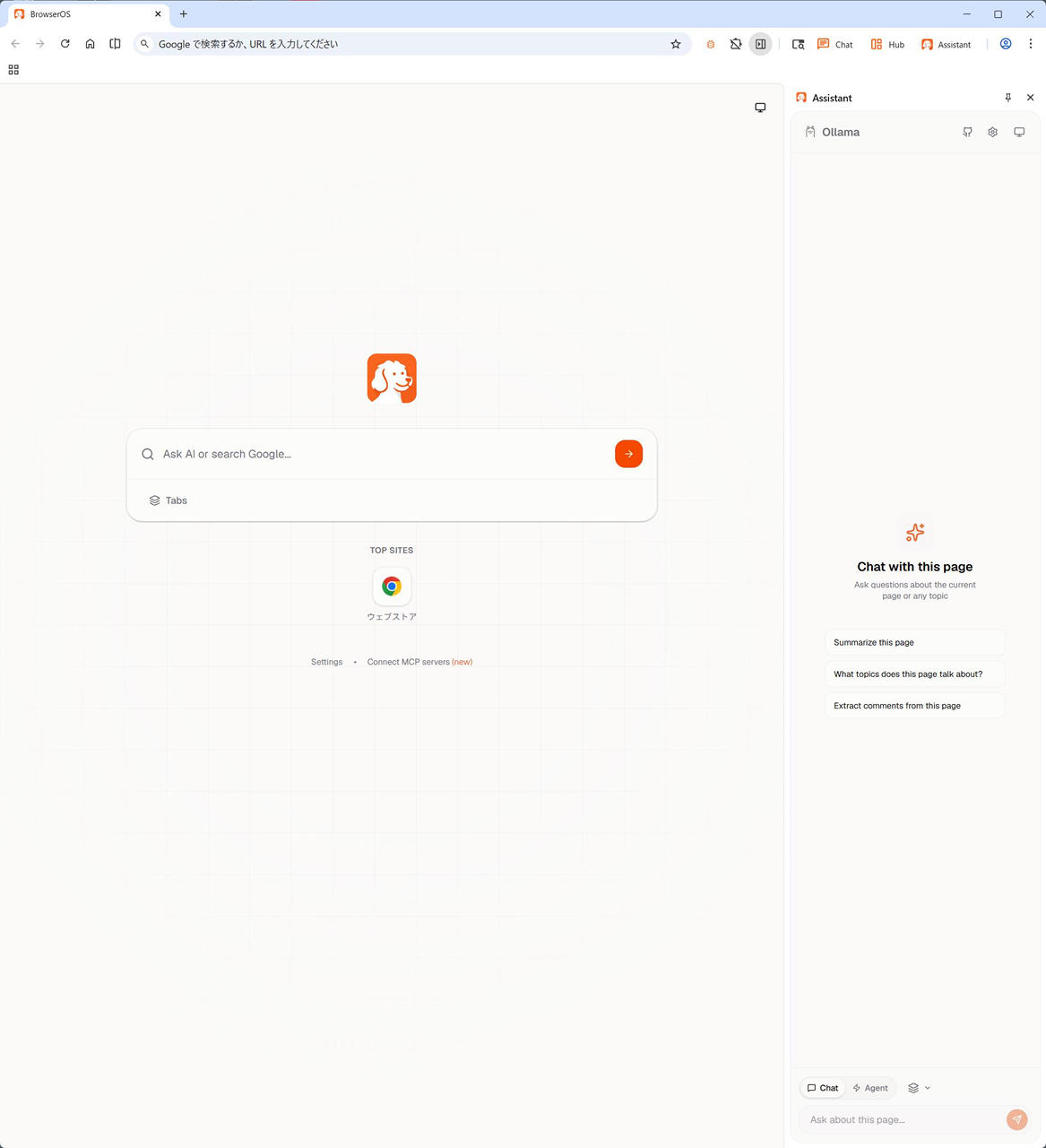 Agentic な操作については、現時点では BrowserOS の モデルを使うのが現実的と感じました。