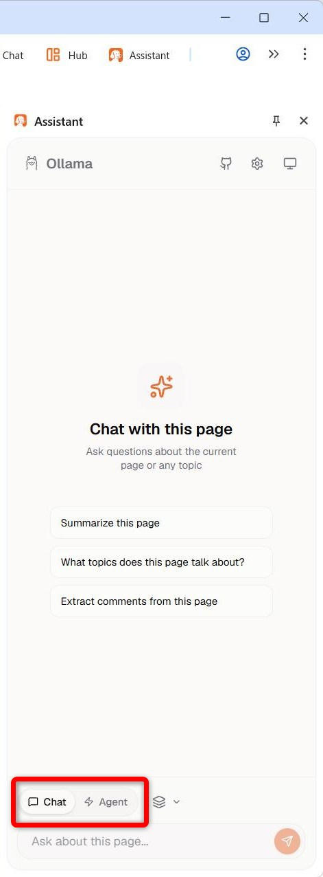 Assistant モードを開くと、下部に [Chat][Agent] ボタンが表示されます。