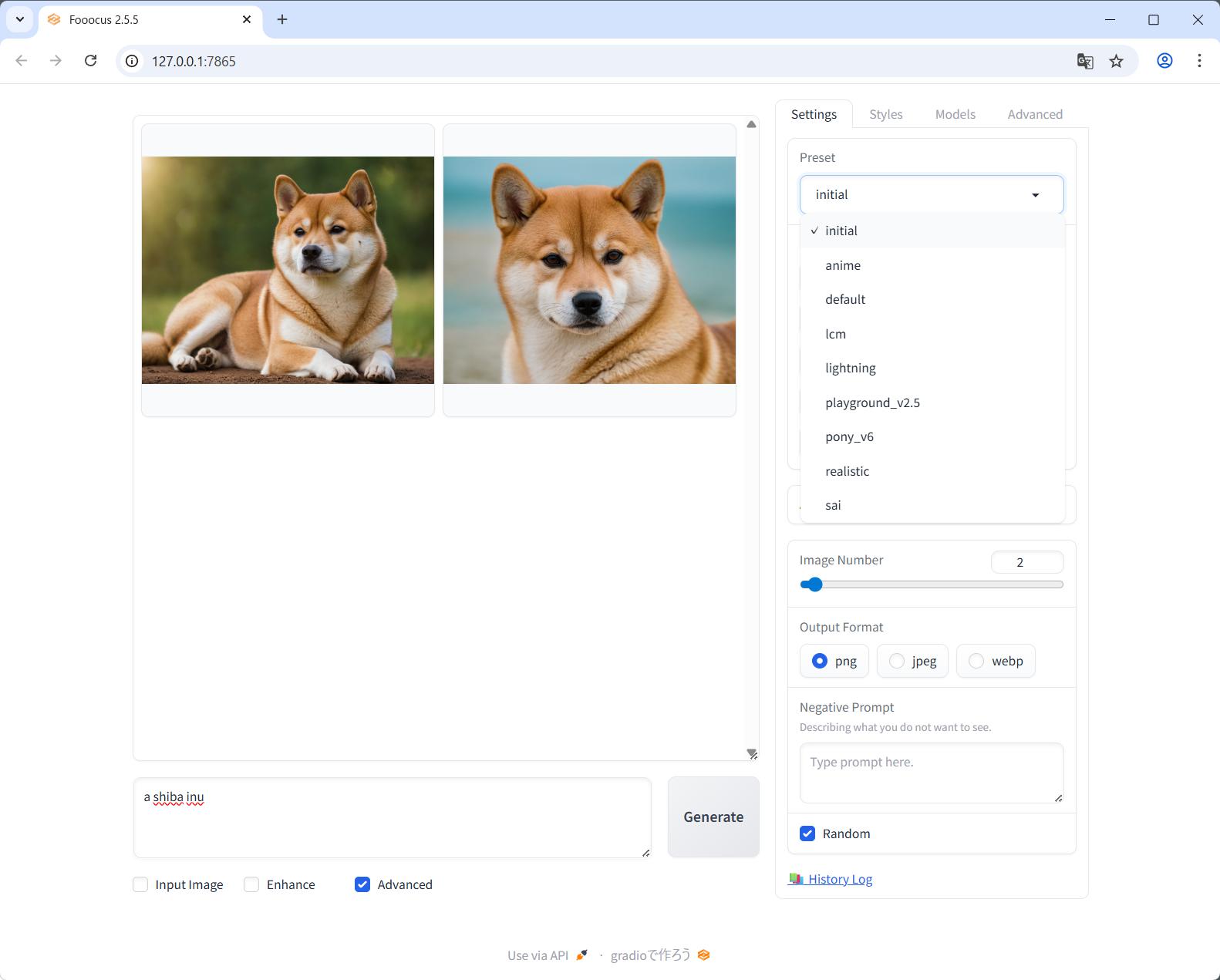 例えば、Preset を anime に変更して画像を生成すると以下のようになりました。