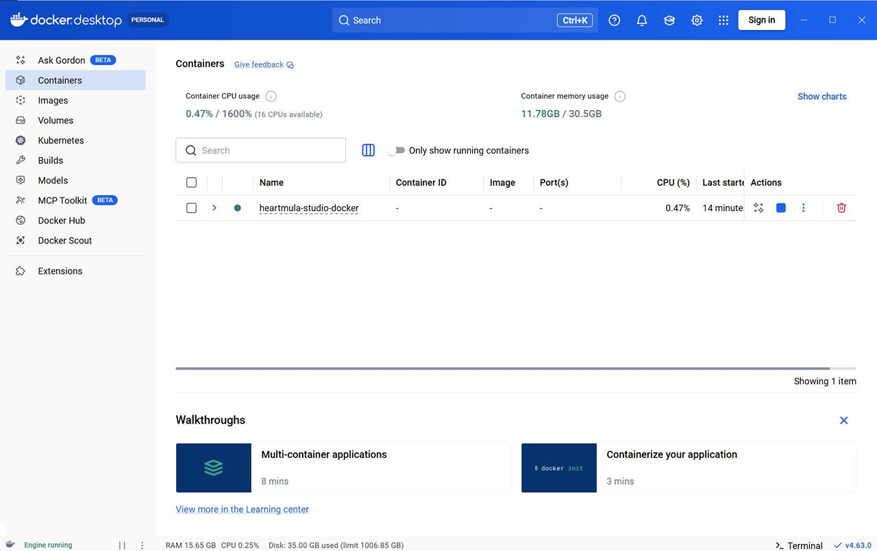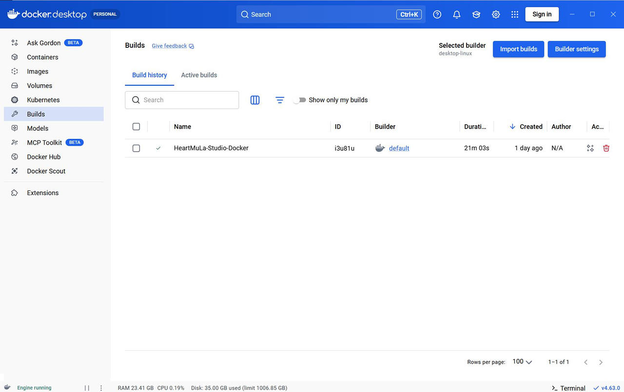 前回は Docker を使わずに、Windows 上で 直接 HeartMuLa Studio を動作させました。