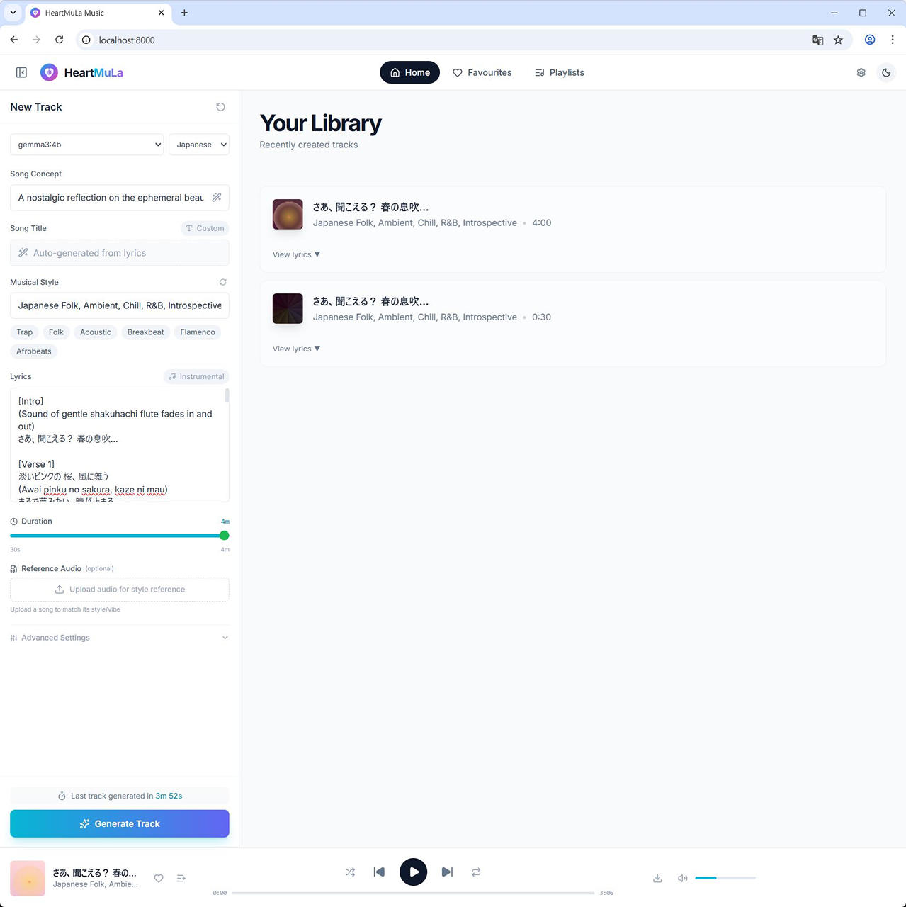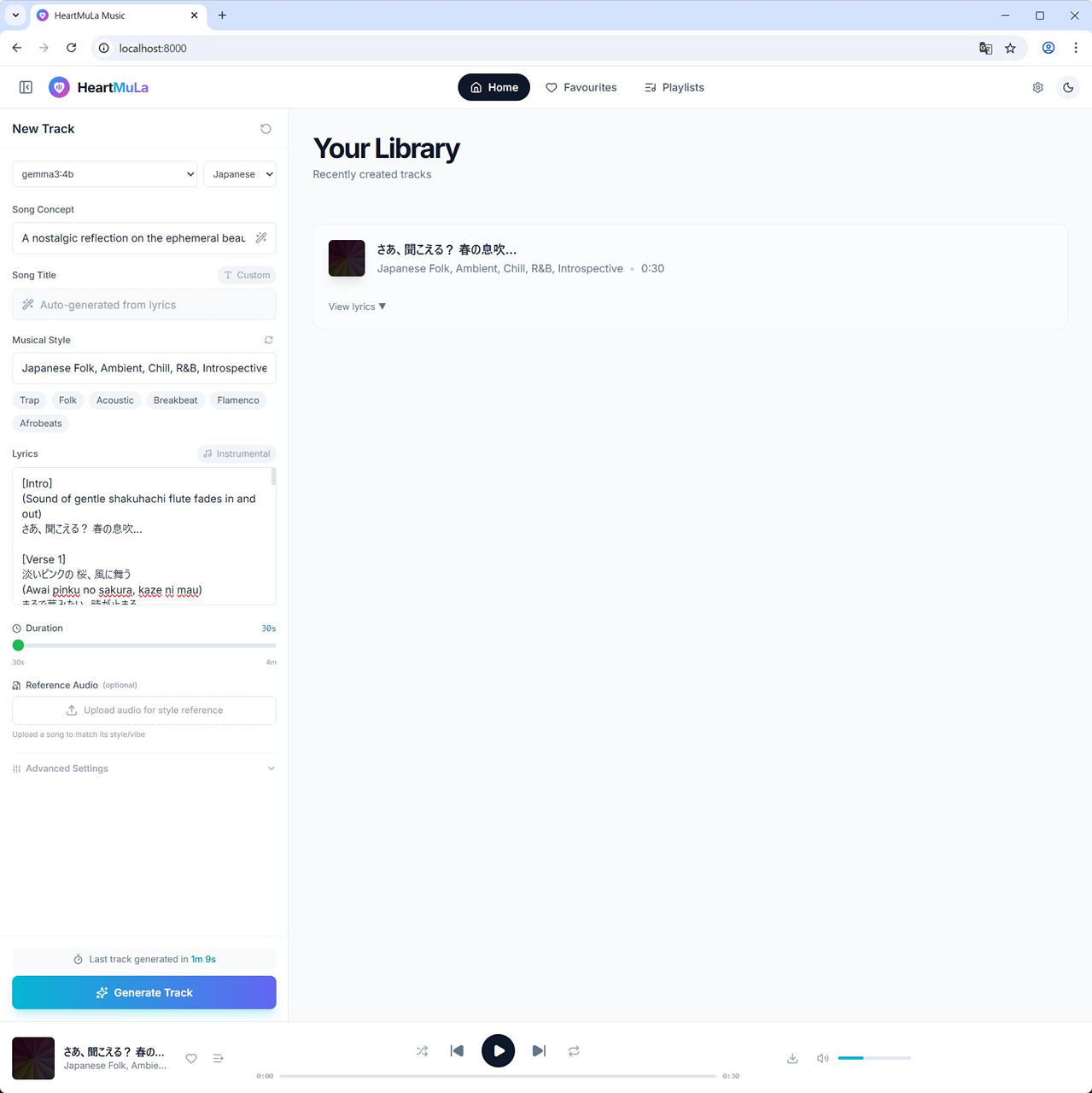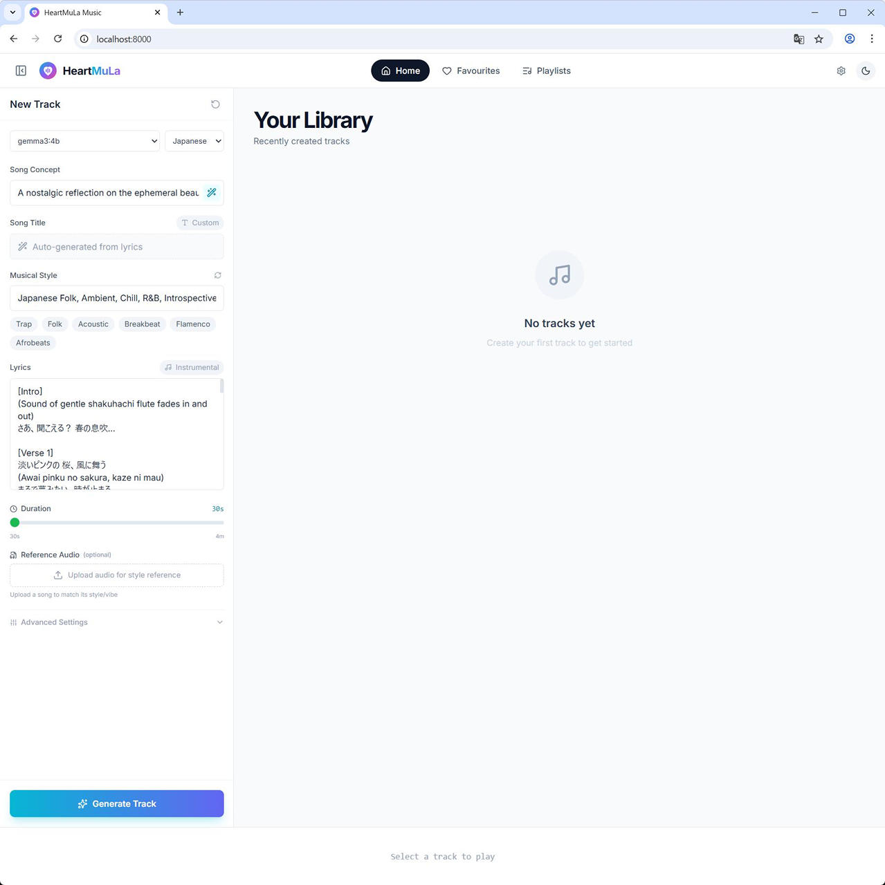 (8) Duration を設定し、Generate Track ボタンをクリックします。