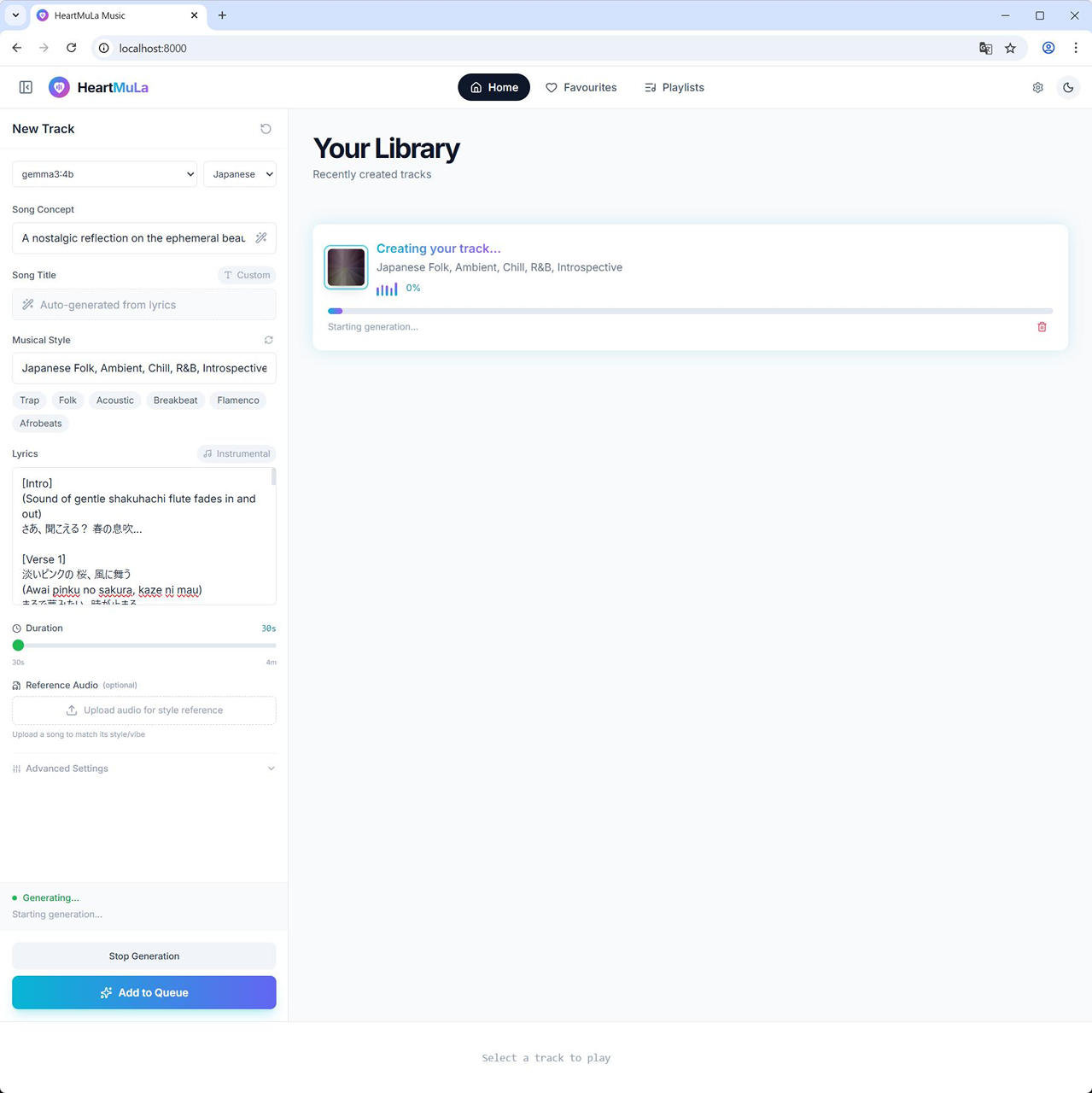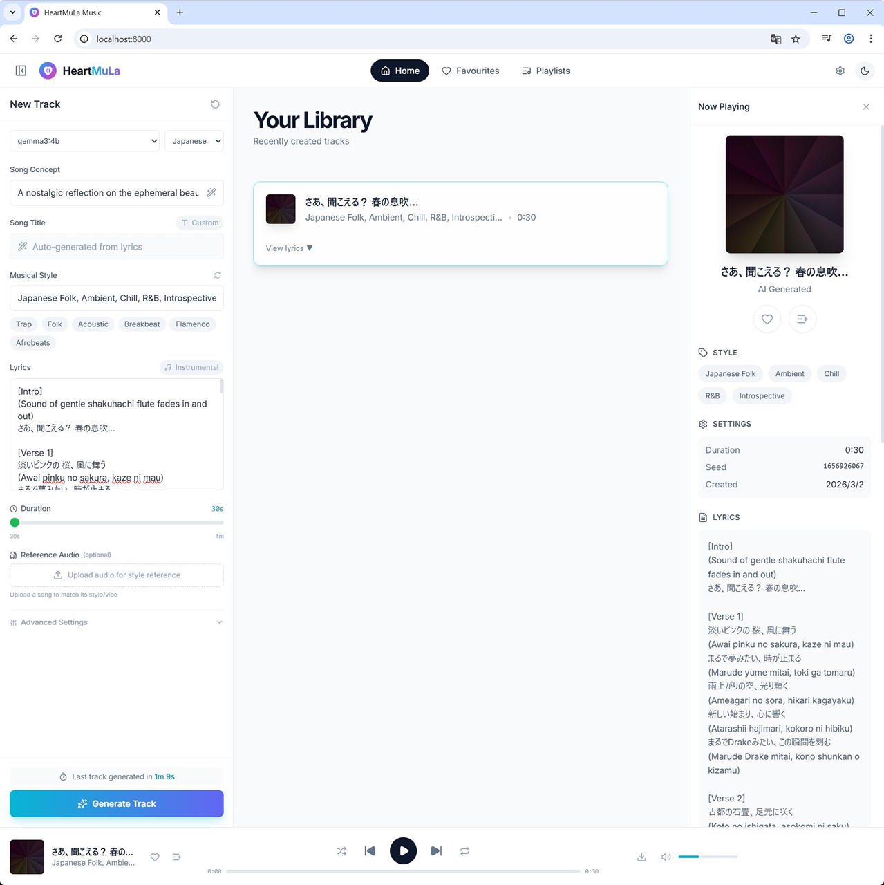 歌詞の作成にローカルで実行している Ollama と連携できます。