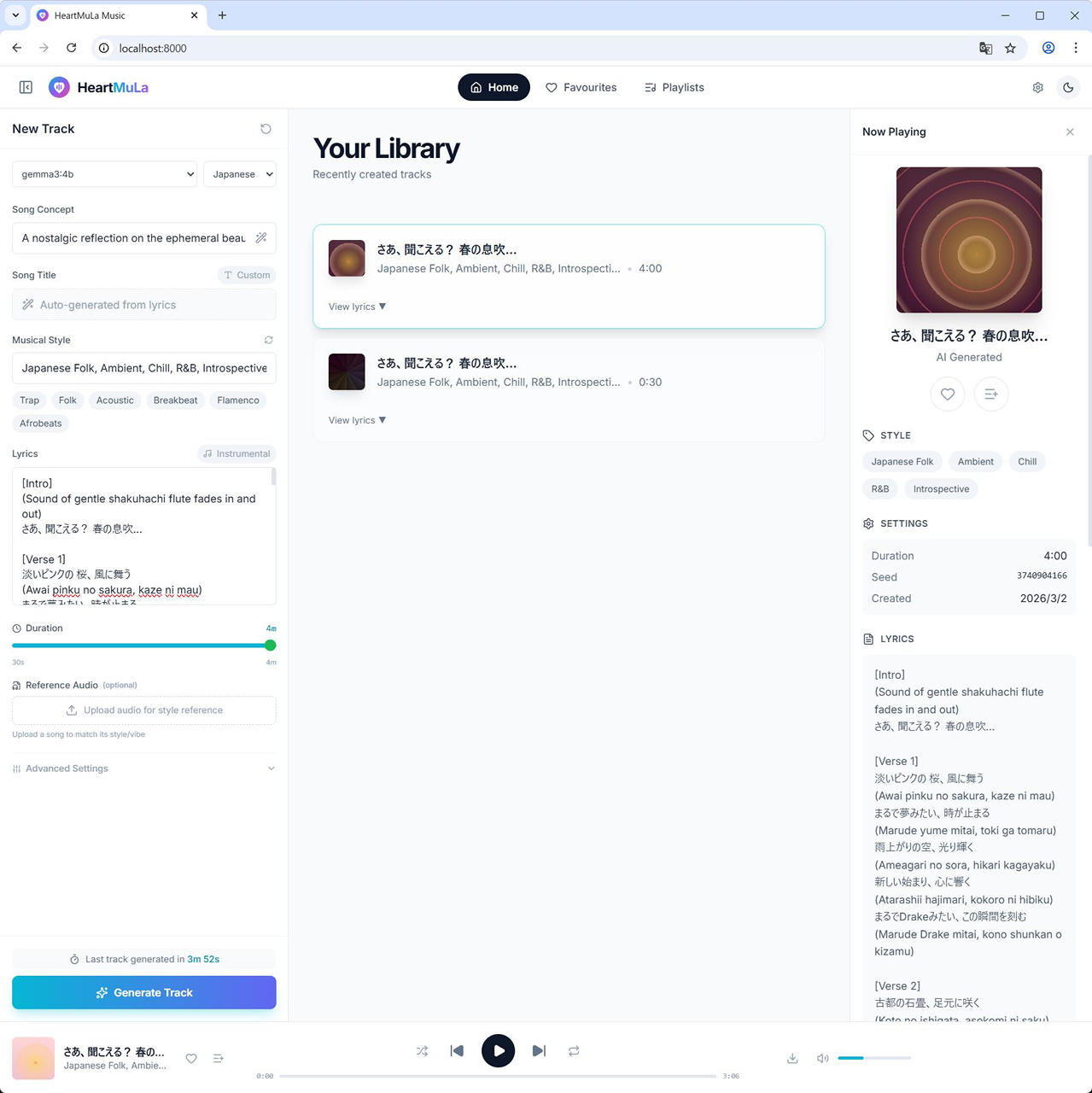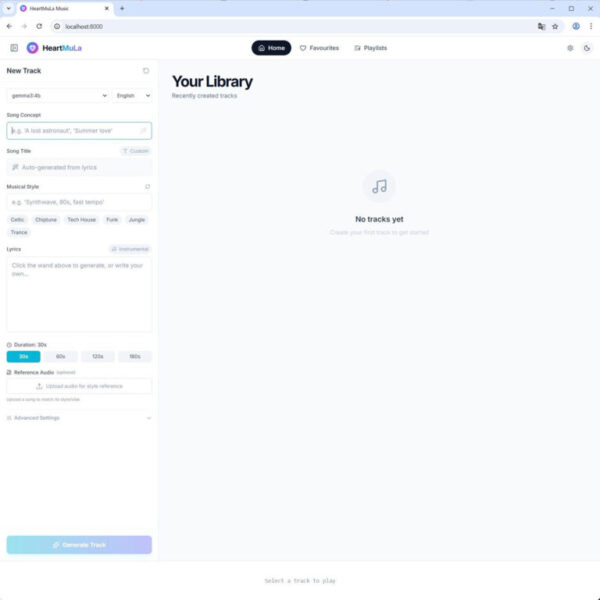 使い方は、Windows 上で直接 HeartMuLa Studio を動かした際と同じです。