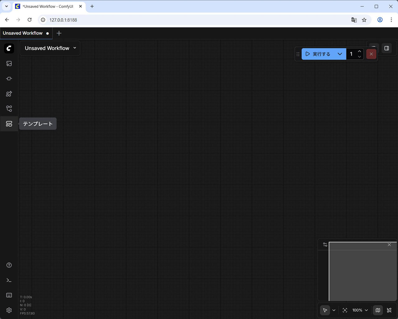 ComfyUI の Web UI を起動し、左側メニューの [テンプレート] をクリックします。