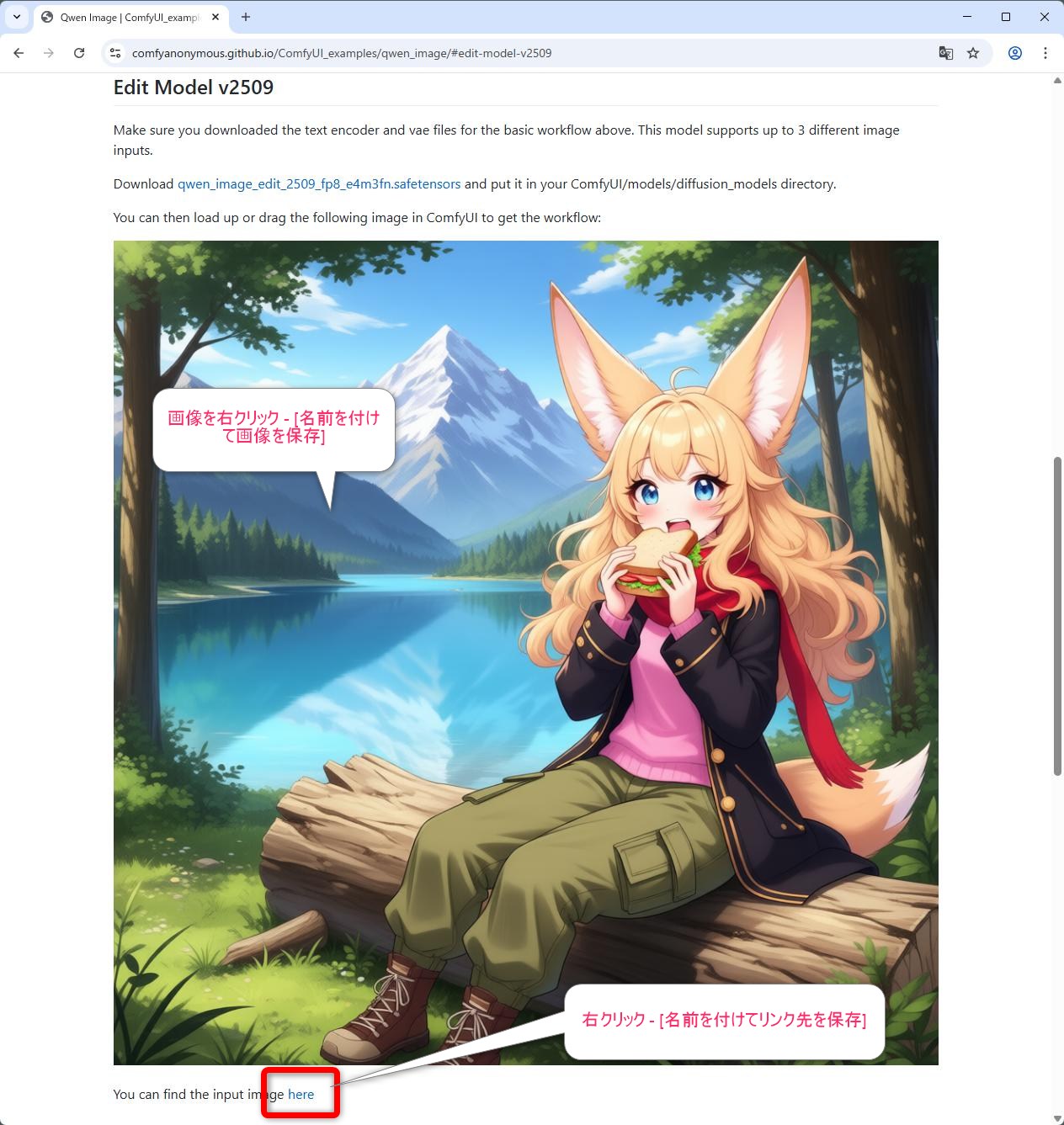 Edit Model v2509 の画像、および You can find the input image here からダウンロードできる入力用の画像をダウンロードします。