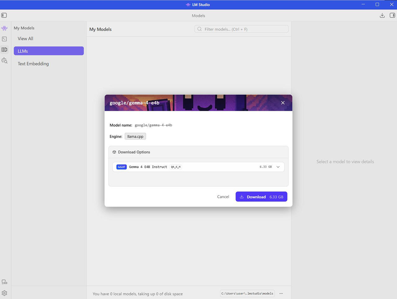 LM Studio で、それぞれのモデルをダウンロードします。