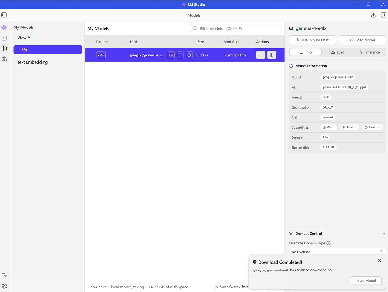 LM Studio のアプリケーション内で検索してもダウンロードできますが、Community モデルが混在するため、今回は 公式モデルを確実に取得するために Web経由でダウンロードしました。