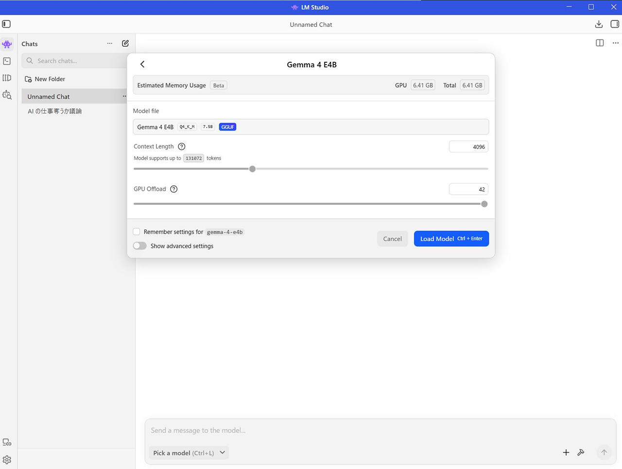 こちらも GPU オフロードを最大にして Thinking も無効にしています。